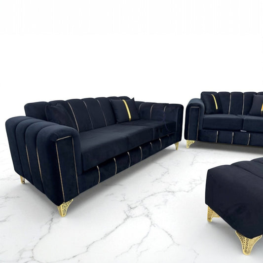 Keysri Sofa in Black Plush Velvet